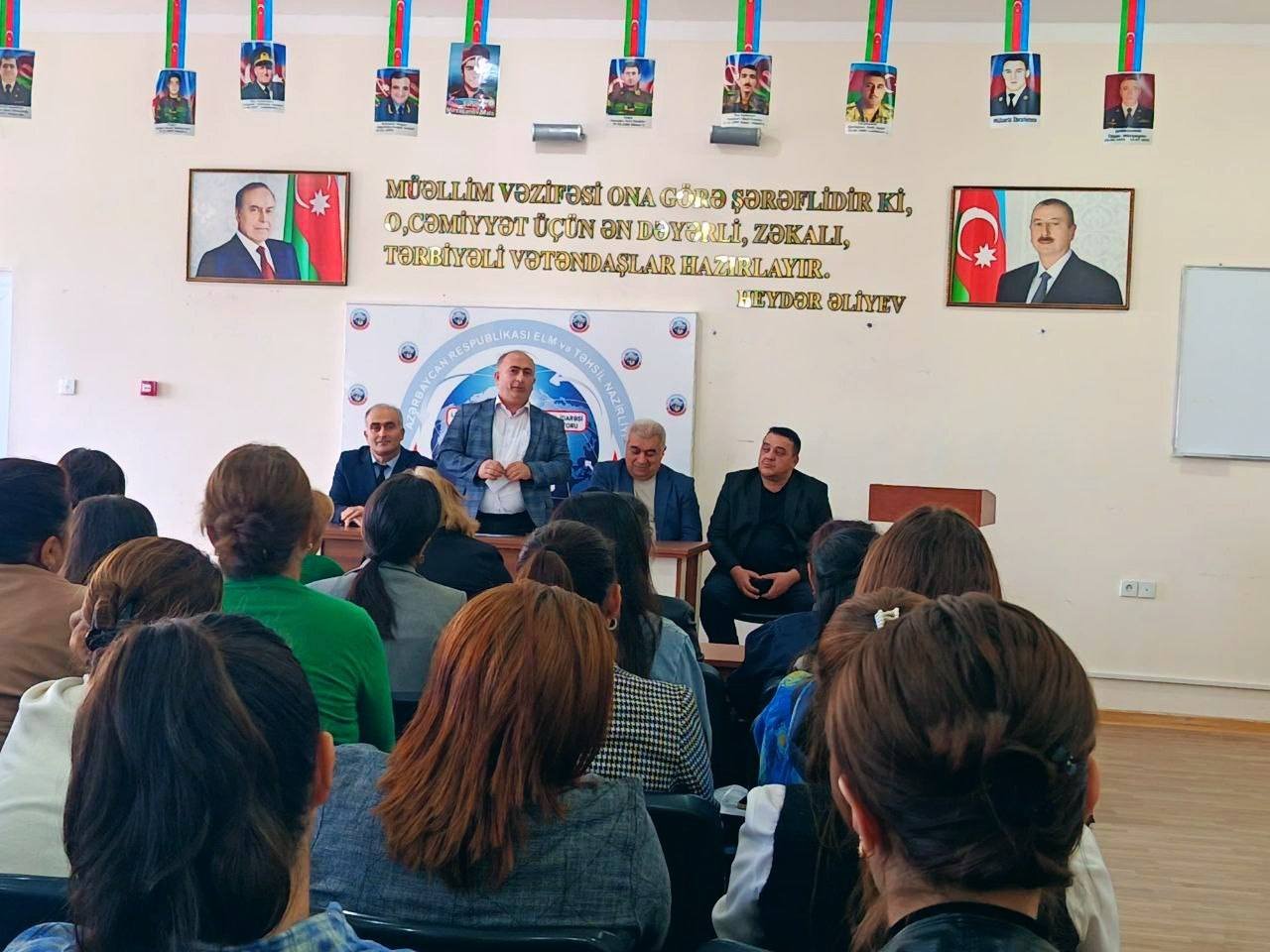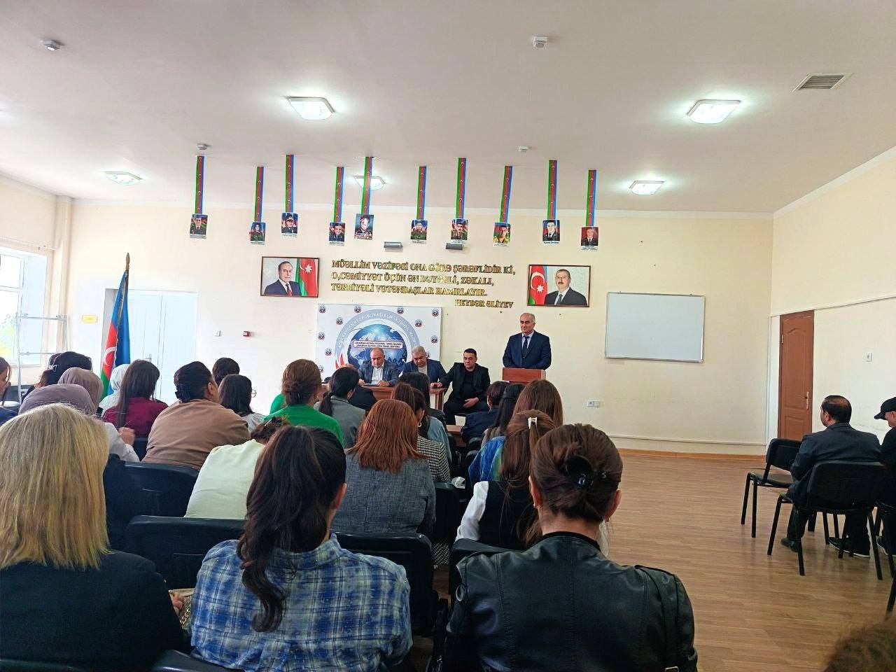 Tədbiri giriş sözü ilə açan məktəbin direktoru Ramiz Ramazanov çıxış edərək bütün müəllimləri bu əlamətdar gün münasibətilə səmimi qəlbdən təbrik edib. O, qeyd edib ki, müəllimlik dünyanın ən müqəddəs və məsuliyyətli peşələrindən biridir. Müəllimlər cəmiyyətin mənəvi sütunu, elm və maarifin daşıyıcıları, millətin gələcəyini formalaşdıran əsas qüvvədir.