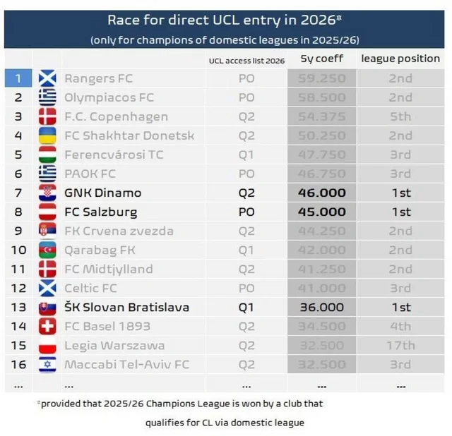Oxu.Az "Football Meets Data" portalına istinadən xəbər verir ki, bunun üçün klubların reytinq siyahısında "Qarabağ"dan yüksəkdə dayanan komandalar öz liqalarında çempion olmalıdırlar.